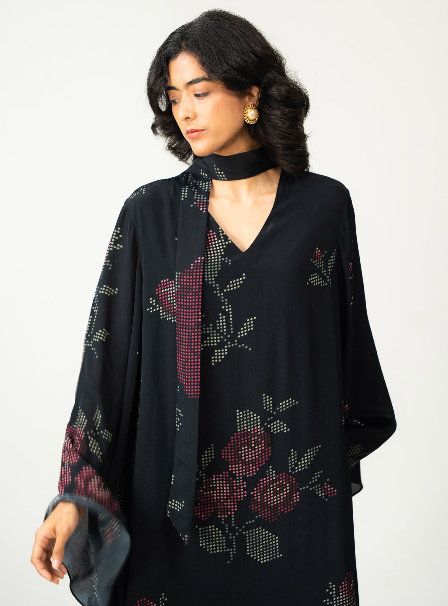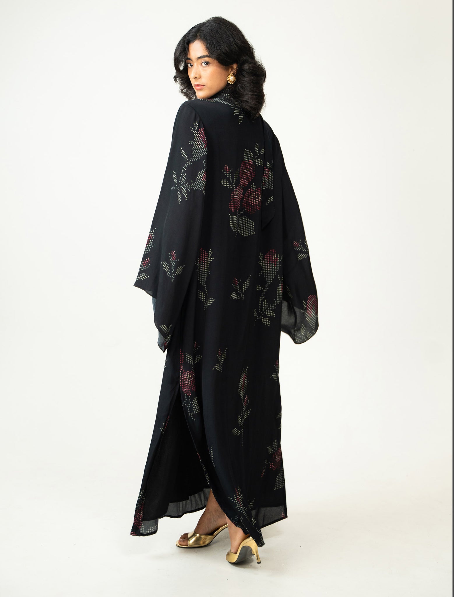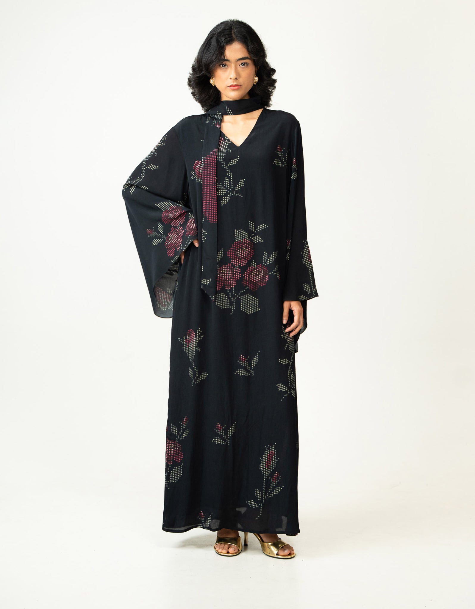 The kaftan has been digitally printed and needs to be handled with care. Professional dry clean only.