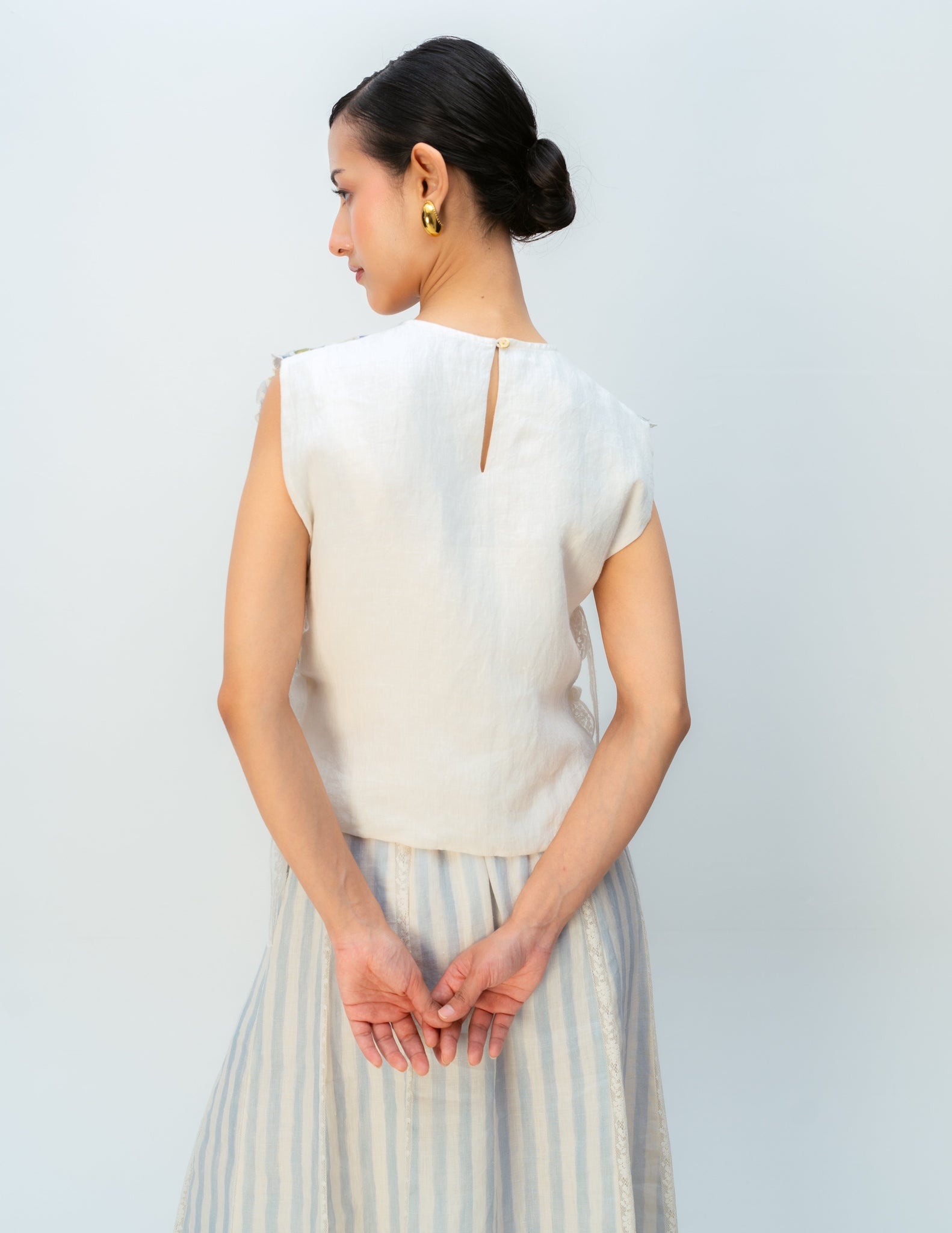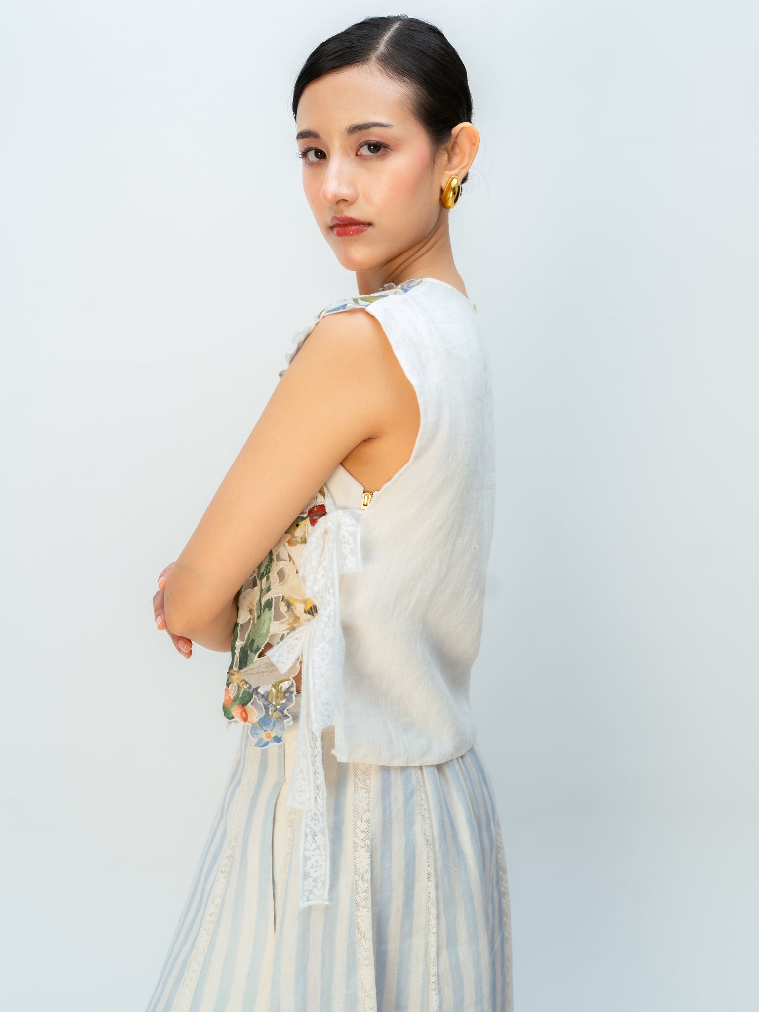 Please note that the bib has been hand-embroidered with delicate beads and needs to be handled with care. Professional dry clean only.