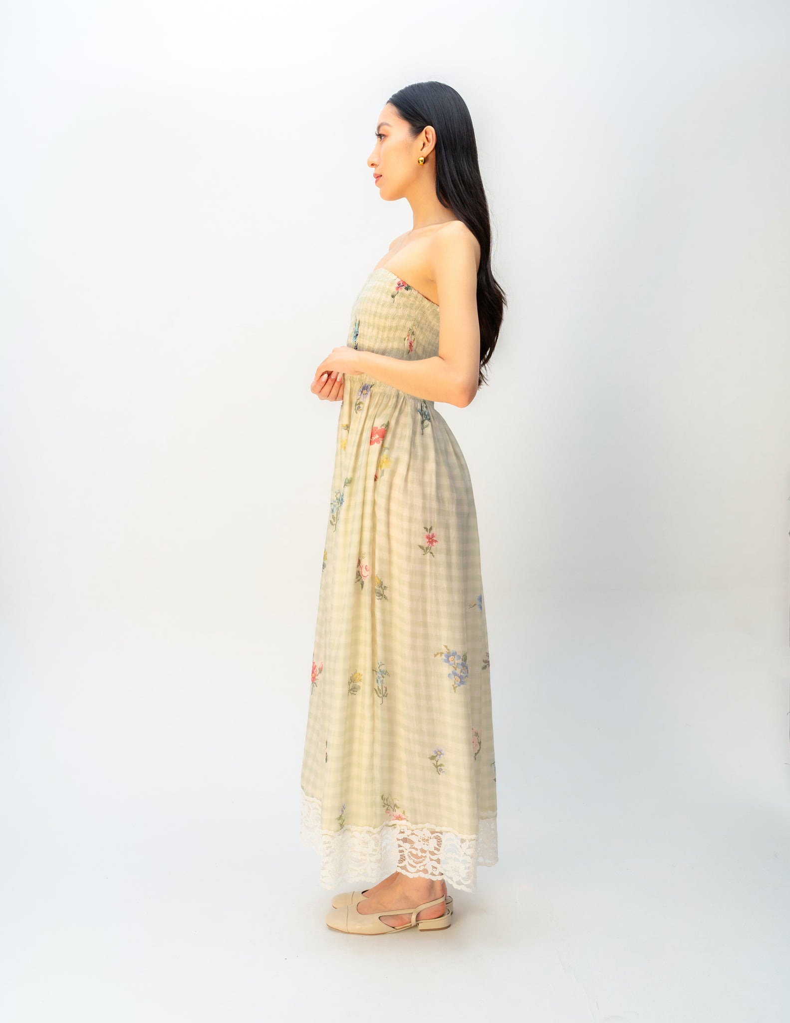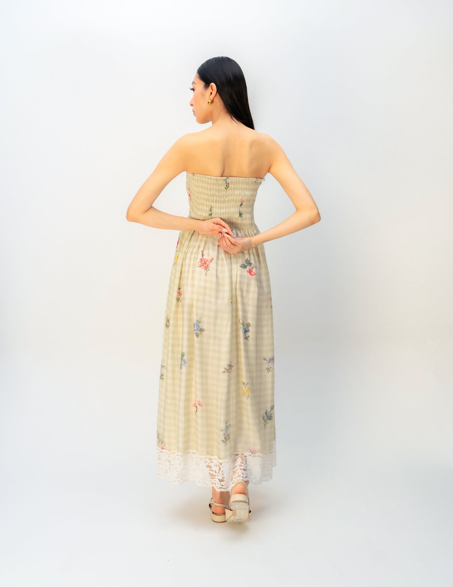 The digitally printed dress requires delicate care. Professional dry clean only. We highly recommend green dry cleaning, which avoids hazardous chemicals and reduces energy consumption.